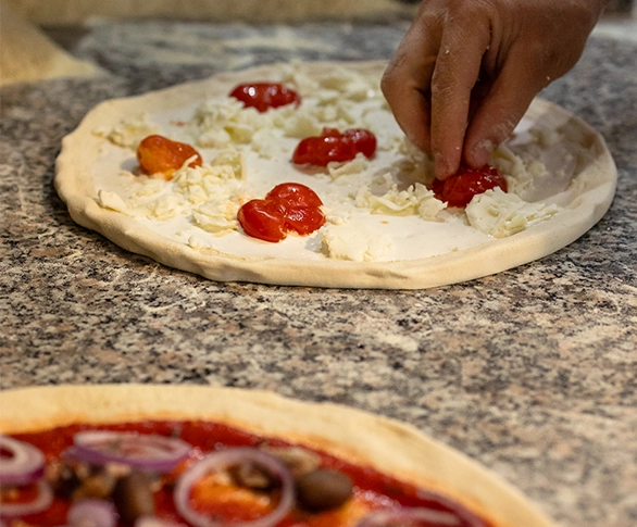 Folosim doar mozzarella 100% din lapte, sos de roșii, brânzeturi și salamuri aduse din Italia și legume proaspete.