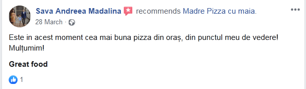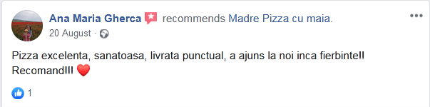Iată ce spun câţiva dintre clienţii noştri, care au savurat Madre Pizza cu maia și cărora le mulţumim cu recunoştinţă!