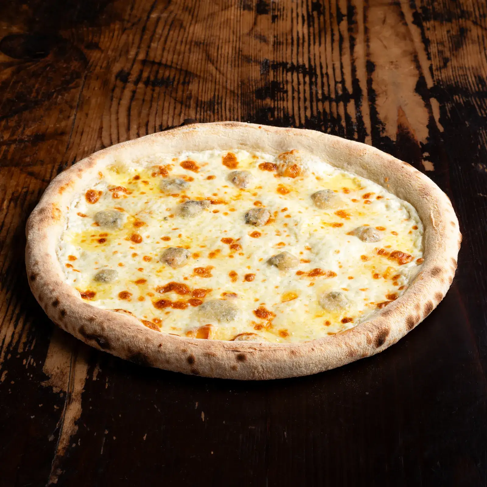aluat cu maia, mozzarella, ricotta, provola affumicata, emmentaler, gorgonzola, oregano